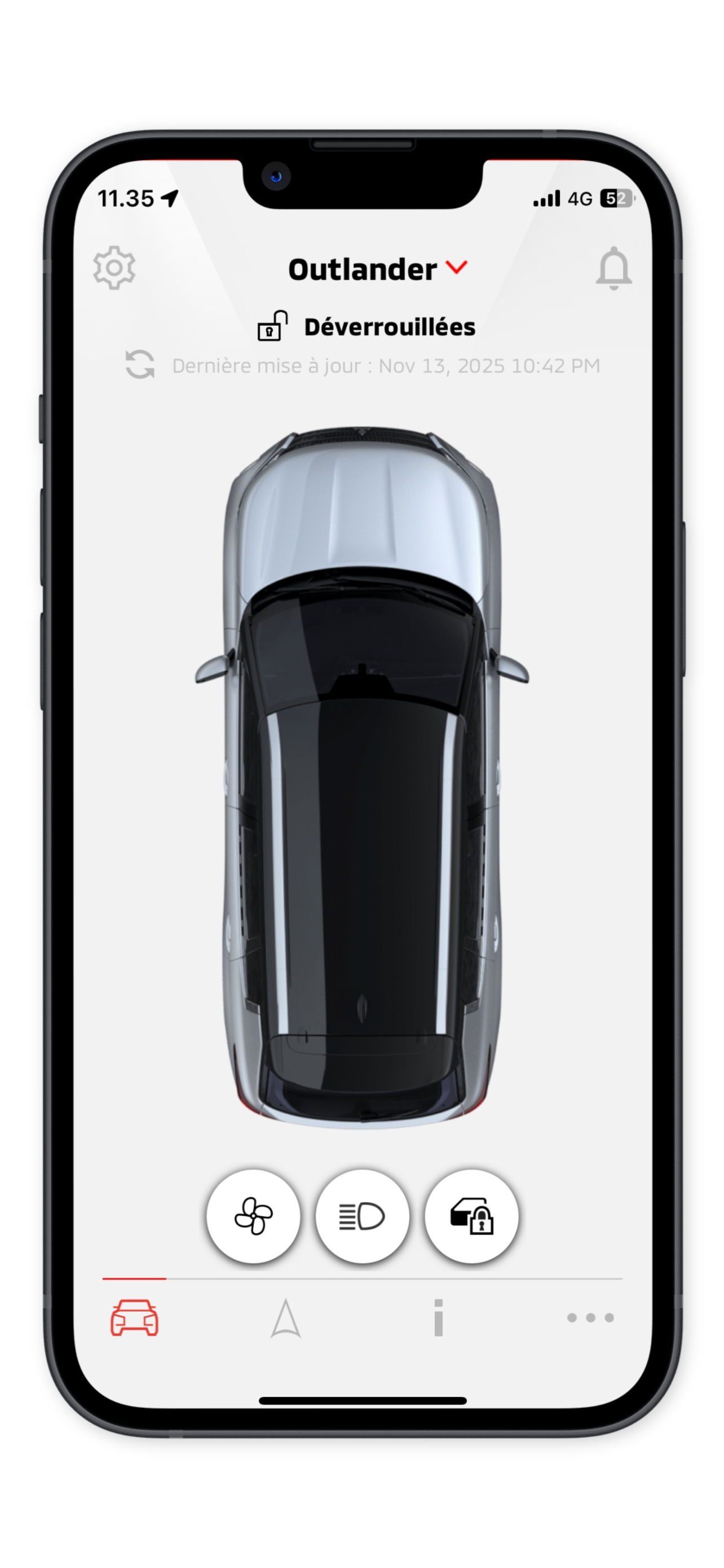 À partir de l’année modèle 2026 de l’Outlander PHEV, les alertes de rappel de verrouillage des portes à distance vous avertissent si vous avez laissé les portes déverrouillées ou les fenêtres ouvertes.