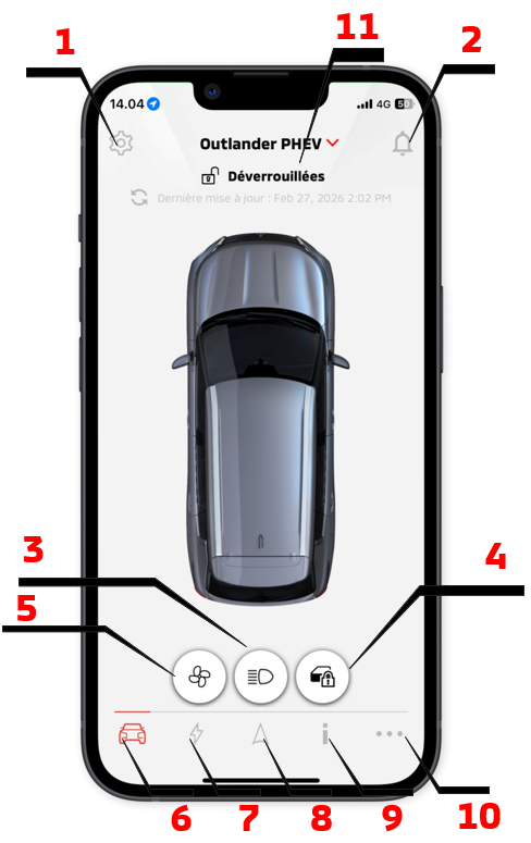 - Commandes de l'écran d'accueil My MITSUBISHI CONNECT