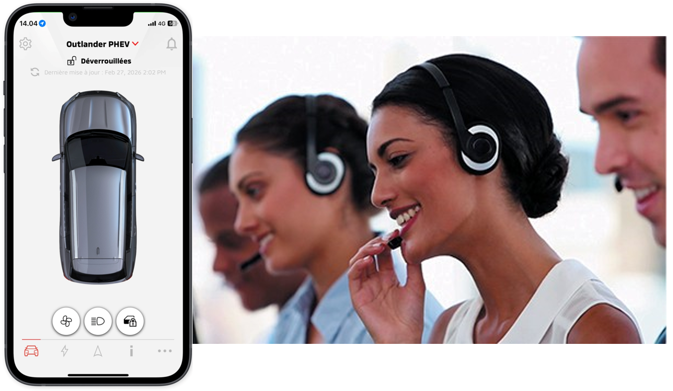 Le centre d'assistance à la clientèle Mitsubishi Connect est disponible 24 heures sur 24, 7 jours sur 7.