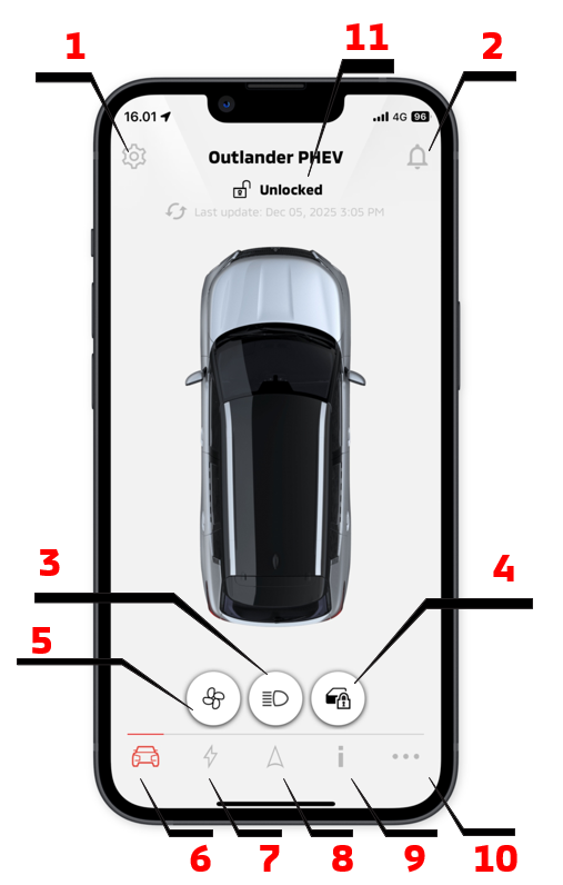 (Available in Canada only) From Model Year 2026 Outlander PHEV, Remote Door Lock Reminder Alerts provide notification if you left your doors unlocked or the windows opened.