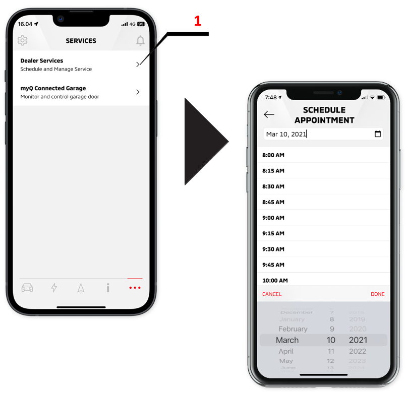 SERVICES: Allows the user to access other connected services include scheduling dealer service appointments. (see SERVICES)